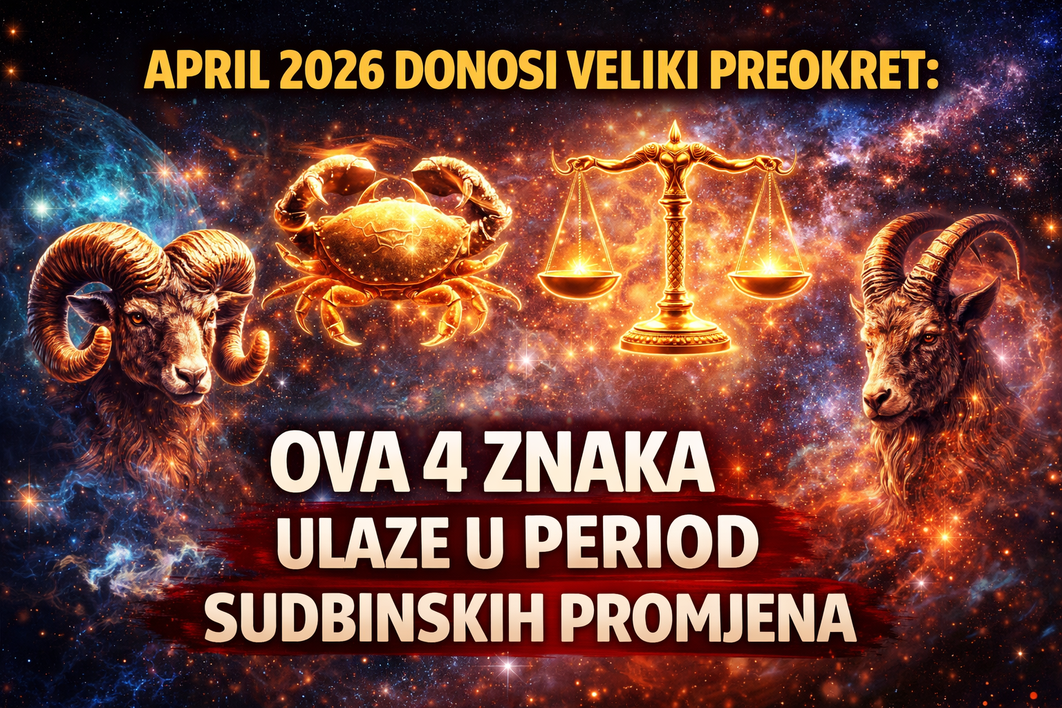 April 2026. godine nosi snažnu kosmičku energiju koja može pokrenuti duboke promjene u životima mnogih ljudi. Astrološki aspekti koji se formiraju tokom ovog mjeseca stvaraju atmosferu transformacije, novih početaka i važnih životnih odluka.