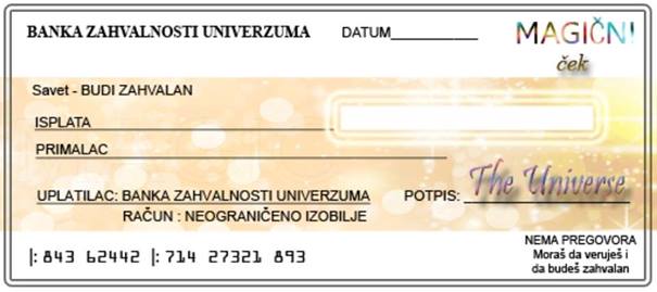 Nemojte pisati iznos na Čeku Obilja (ne ograničavajte Univerzum, neka vam isplati koliko god je potrebno).