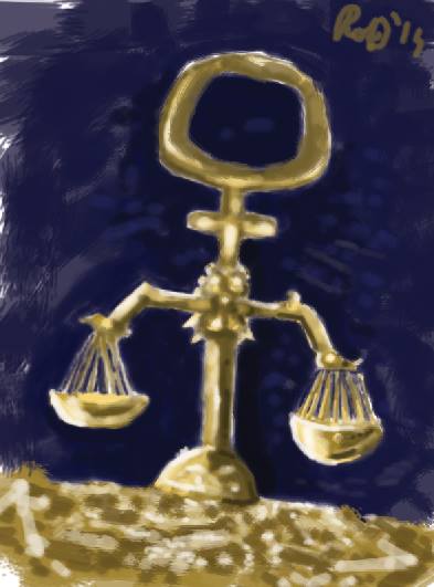 Poput Vage, ovakva Venera je u stanju da tačino odredi koliko je nekome potrebno ljubavi i da istu nesebično daruje. Ovakve Venere imaju urođenu sposobnost dokazati voljenom biću potpuni oblik svojih osjećaja, ali ono što je jako teško je da ovakva Venera pronađe savršen omjer i drži tasove u balansu. Ako dosegne takav nivo, trudiće se da nikada više ne izađe iz ovakvog stanja. No, jedino ono što je može dovesti u takvo stanje je jednak omjer težine na drugom tasu, dakle onaj koga ona vidi kao dostojnog partnera.
