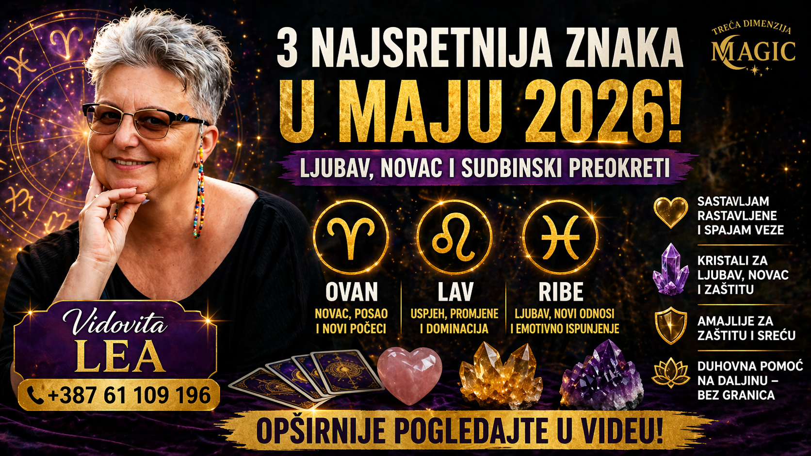 U novoj emisiji na kanalu Treća Dimenzija, gostovala je poznata vidovita Lea – iscjelitelj, kristaloterapeut i dugogodišnji praktičar duhovnih tehnika. Sa više od 30 godina iskustva, Lea donosi konkretne uvide o tome šta nas očekuje u maju 2026. godine, ali i savjete koji mogu pomoći svima koji traže ljubav, stabilnost i uspjeh.